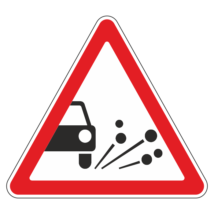 Дорожный знак 1.18 «Выброс гравия» (металл 0,8 мм, III типоразмер: сторона 1200 мм, С/О пленка: тип Б высокоинтенсивная) в Нижнекамске купить
