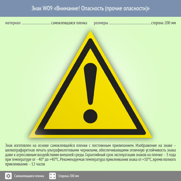 Знак W09 «Внимание! опасность (прочие опасности)» (пленка, сторона 200 мм) в Нижнекамске купить