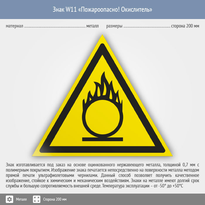 Знак W11 «Пожароопасно! окислитель» (металл, сторона 200 мм) в Нижнекамске купить