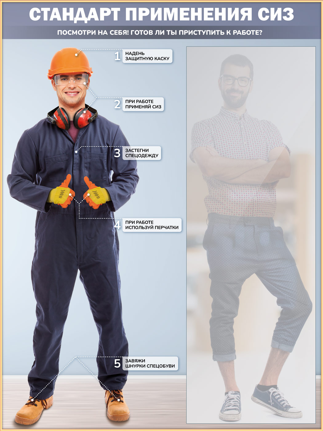 Стенд для демонстрации применения СИЗ с зеркалом, 1500х2000 мм в золотом багете (СПС-01-З) в Нижнекамске купить