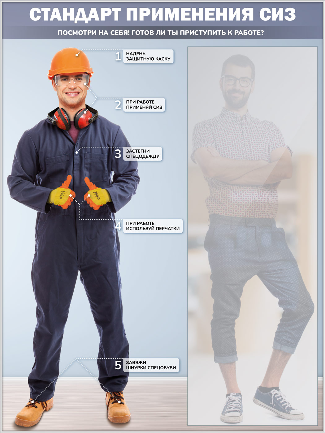 Стенд для демонстрации применения СИЗ с зеркалом, 1500х2000 мм в серебряном багете (СПС-01-С) в Нижнекамске купить