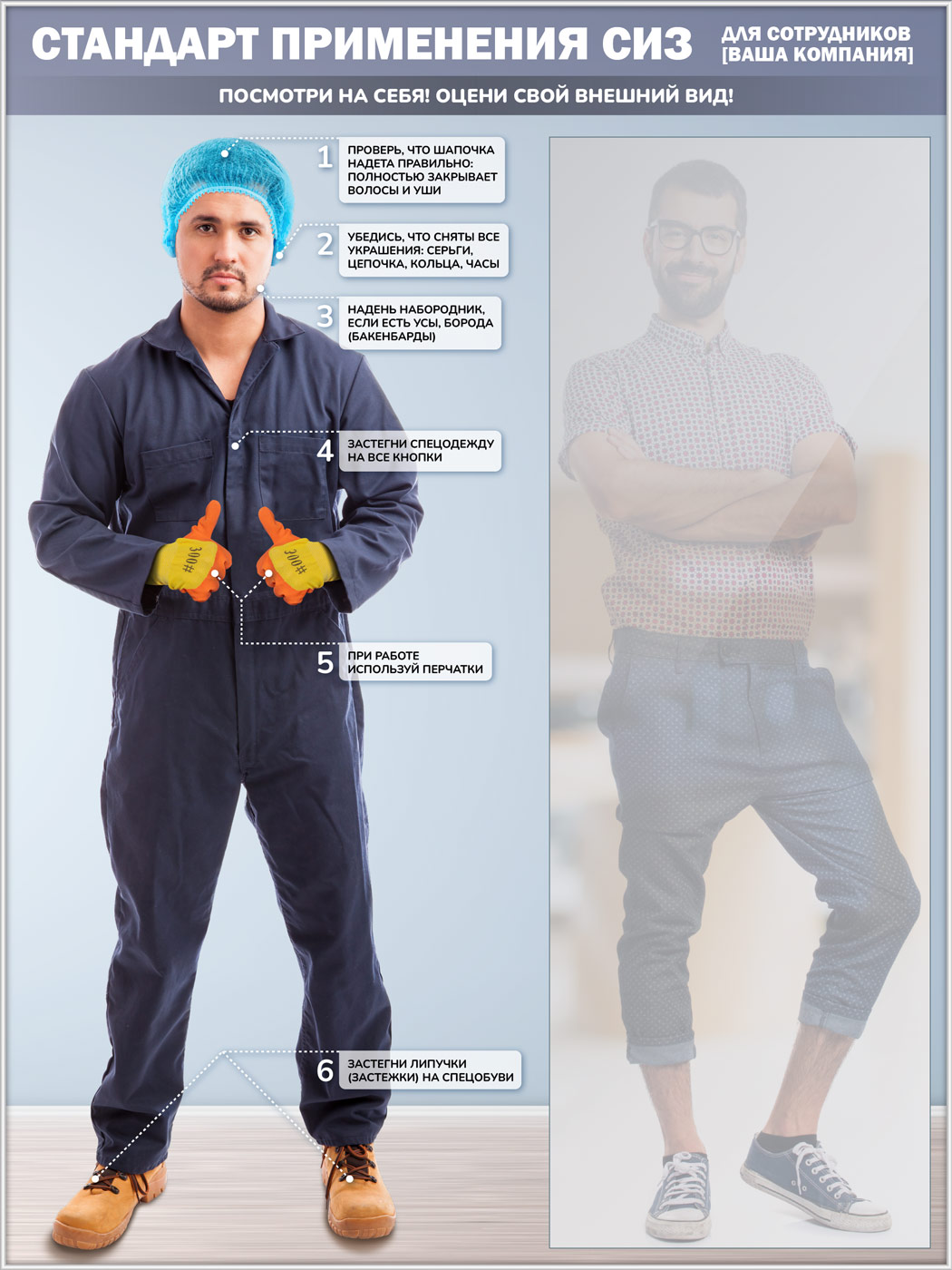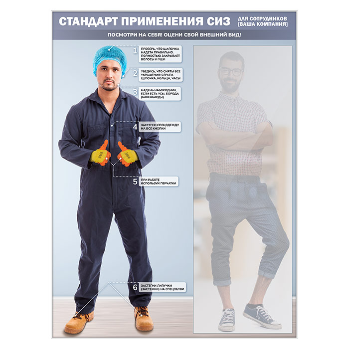 Стенд для демонстрации применения СИЗ с зеркалом, 1500х2000 мм в серебряном багете (СПС-02-С) в Нижнекамске купить