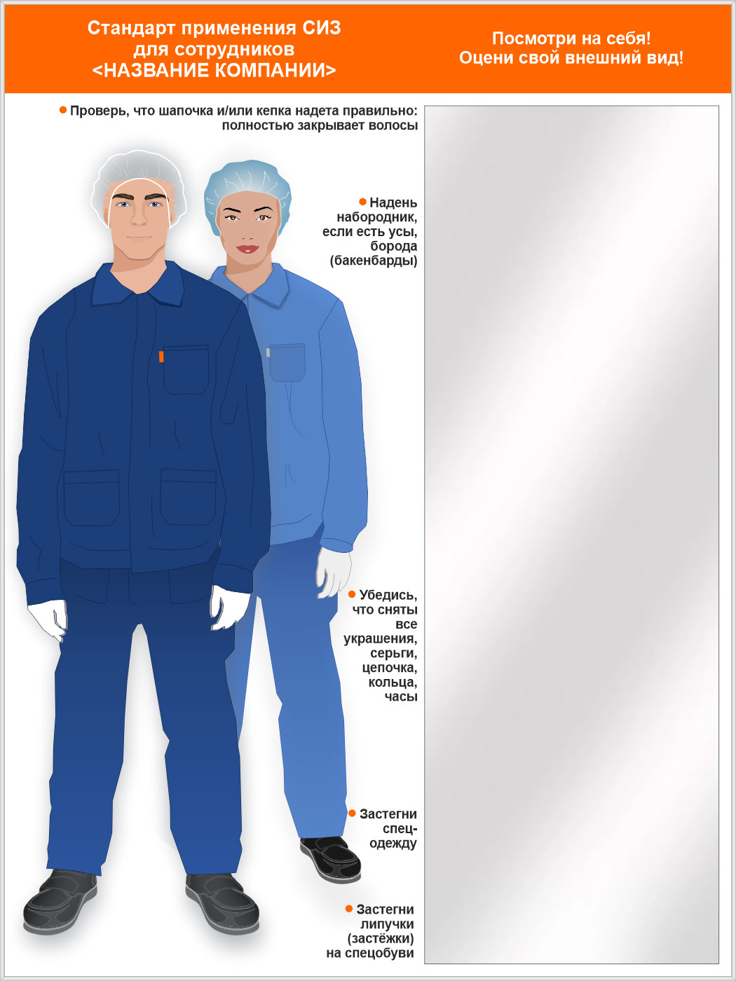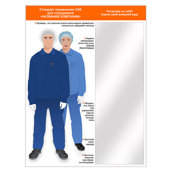 Стенд для демонстрации применения СИЗ с зеркалом, 1500х2000 мм в серебряном багете (СПС-04.2-С) в Нижнекамске купить