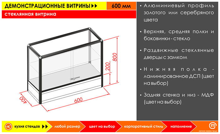 Стеклянная витрина, 600 мм в Нижнекамске купить