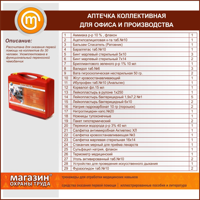 Аптечка КОЛЛЕКТИВНАЯ для офиса и производства (до 30 человек) - пластиковый чемодан в Нижнекамске купить