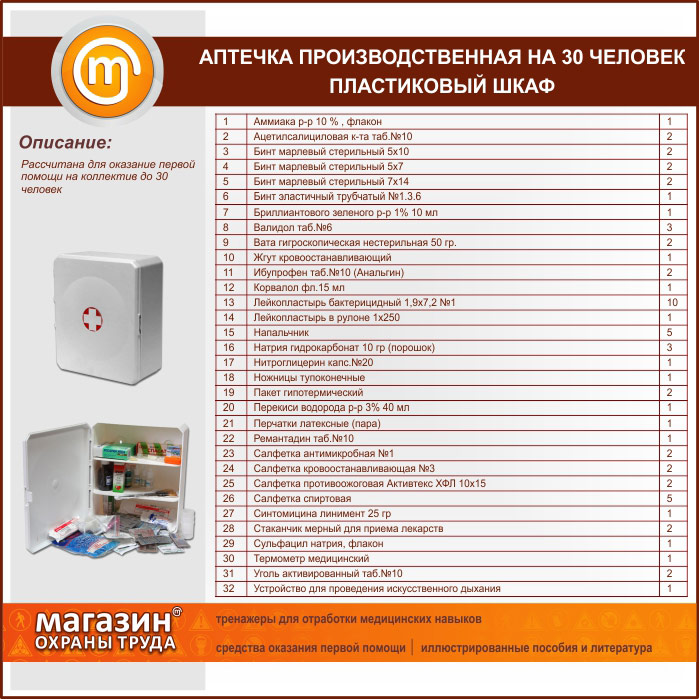 Аптечка ПРОИЗВОДСТВЕННАЯ (до 30 человек) - пластиковый шкаф в Нижнекамске купить