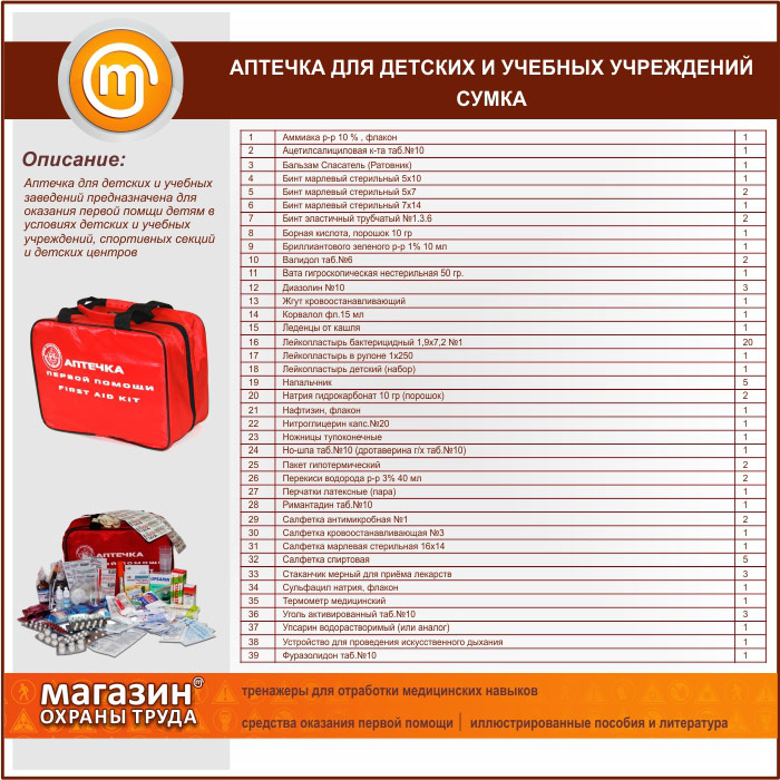Аптечка ДЛЯ ДЕТСКИХ И УЧЕБНЫХ УЧРЕЖДЕНИЙ - сумка в Нижнекамске купить