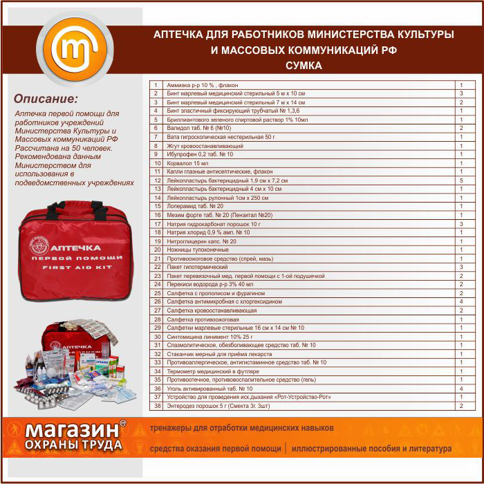 Аптечка ДЛЯ РАБОТНИКОВ МИНИСТЕРСТВА КУЛЬТУРЫ - сумка | Аптечка ДЛЯ РАБОТНИКОВ МИНИСТЕРСТВА КУЛЬТУРЫ - сумка |