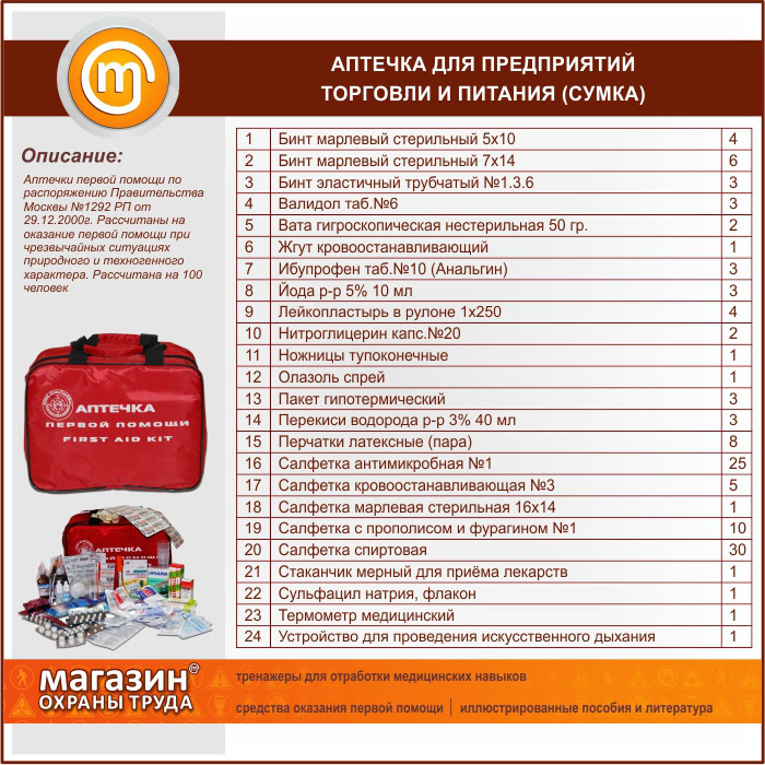 Аптечка для предприятий торговли и питания - (на 100 человек) - сумка в Нижнекамске купить