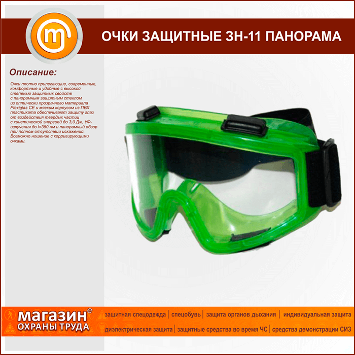 Очки защитные закрытые с непрямой вентиляцией ЗН11 «PANORAMA» | Очки защитные закрытые с непрямой вентиляцией ЗН11 «PANORAMA» |