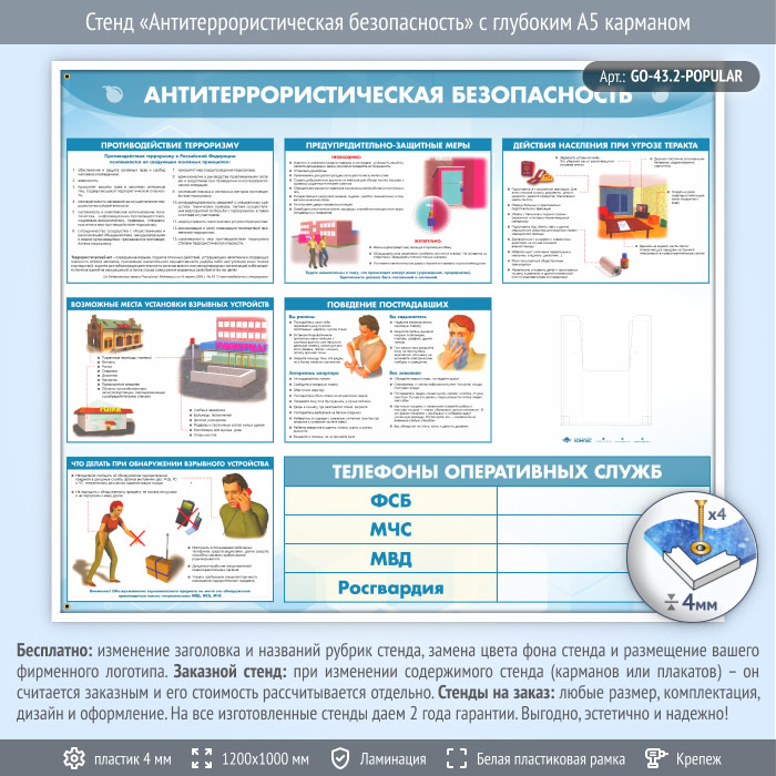 Стенд «Антитеррористическая безопасность» с глубоким А5 карманом (GO-43.2-POPULAR)
