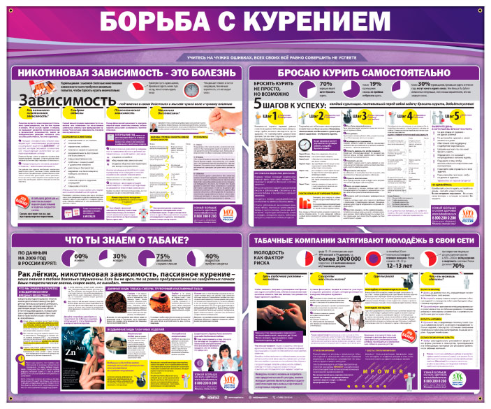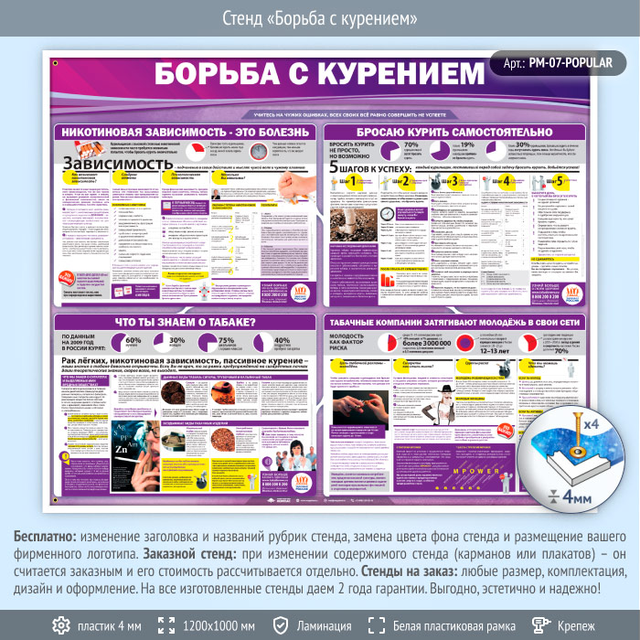 Стенд «Борьба с курением» (PM-07) содержит информацию по борьбе с курением.