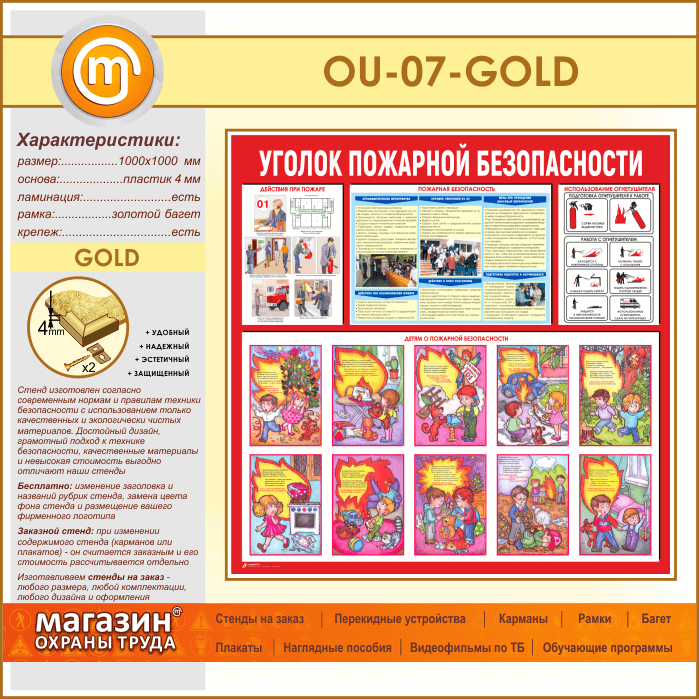 Стенд «Уголок пожарной безопасности» (OU-07-GOLD) в Нижнекамске купить