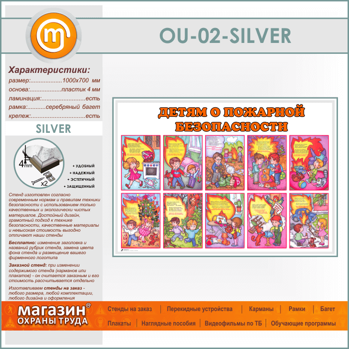 Стенд «Детям о пожарной безопасности» (OU-02-SILVER) в Нижнекамске купить