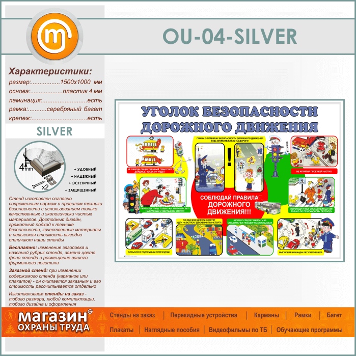 Стенд «Уголок безопасности дорожного движения» (OU-04-SILVER) в Нижнекамске купить