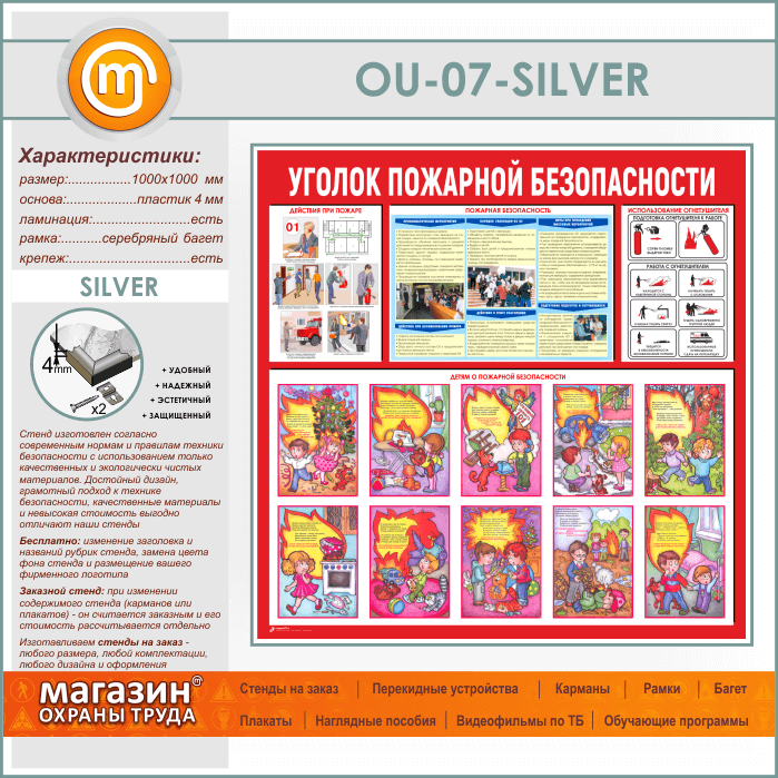 Стенд «Уголок пожарной безопасности» (OU-07-SILVER) в Нижнекамске купить