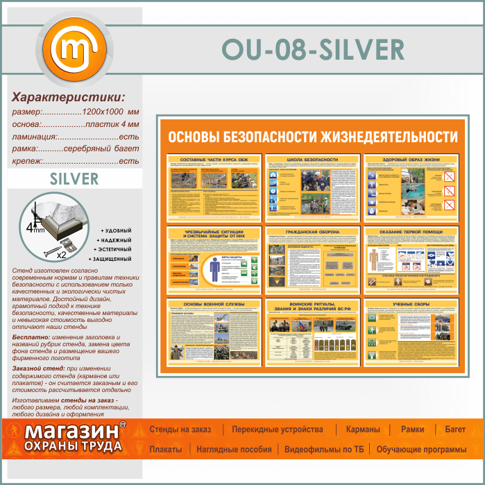 Стенд «Основы безопасности жизнедеятельности» (OU-08-SILVER) в Нижнекамске купить