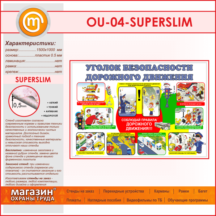 Стенд «Уголок безопасности дорожного движения» (OU-04-SUPERSLIM) в Нижнекамске купить