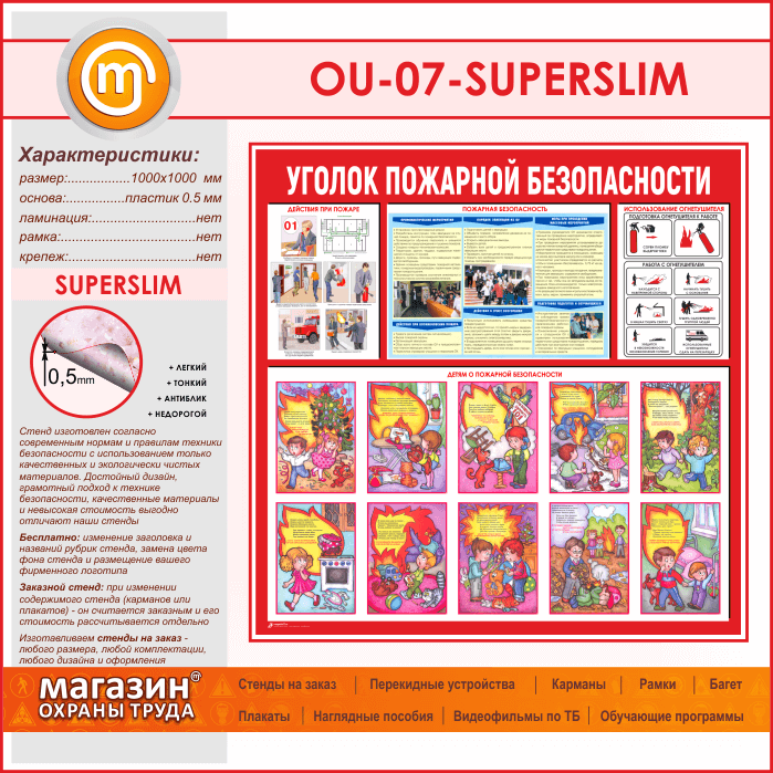 Стенд «Уголок пожарной безопасности» (OU-07-SUPERSLIM) в Нижнекамске купить