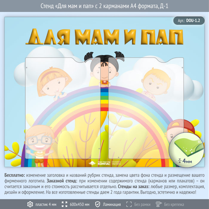 Стенд «Для мам и пап» с 2 карманами А4 формата (DOU-1.2) в Нижнекамске купить