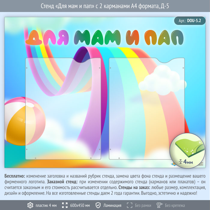 Стенд «Для мам и пап» с 2 карманами А4 формата (DOU-5.2) в Нижнекамске купить