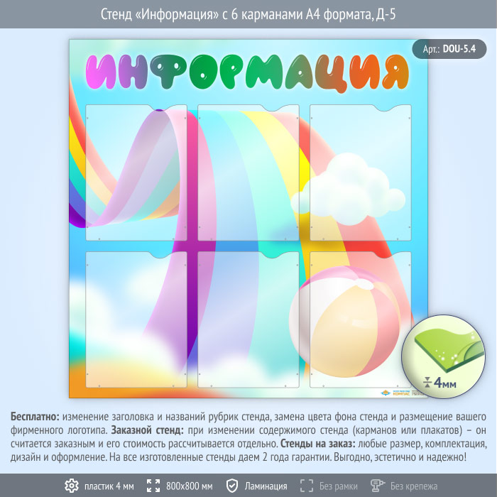 Стенд «Информация» с 6 карманами А4 формата (DOU-5.4) в Нижнекамске купить