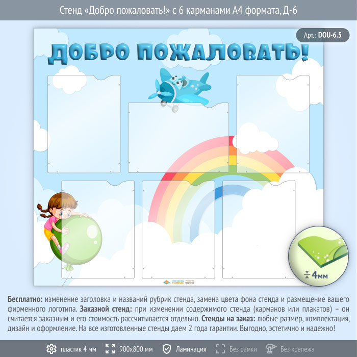 Стенд «Добро пожаловать!» с 6 карманами А4 формата (DOU-6.5) в Нижнекамске купить