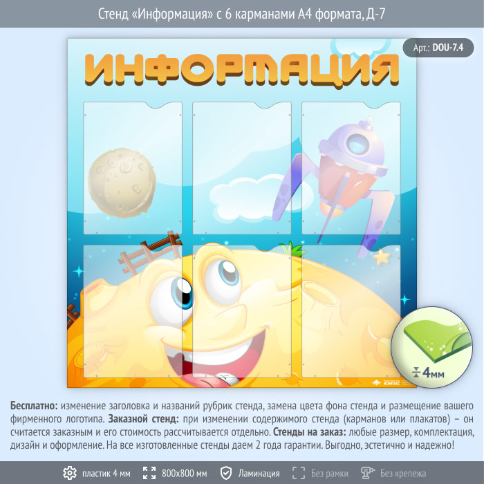 Стенд «Информация» с 6 карманами А4 формата (DOU-7.4) в Нижнекамске купить