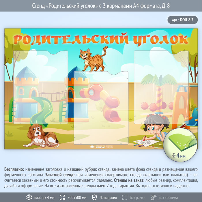 Стенд «Родительский уголок» с 3 карманами А4 формата (DOU-8.3) в Нижнекамске купить