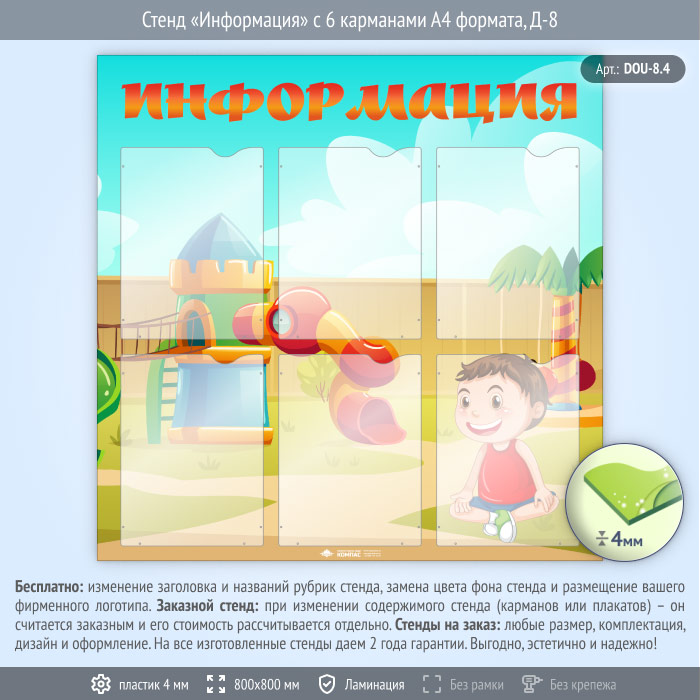 Стенд «Информация» с 6 карманами А4 формата (DOU-8.4) в Нижнекамске купить