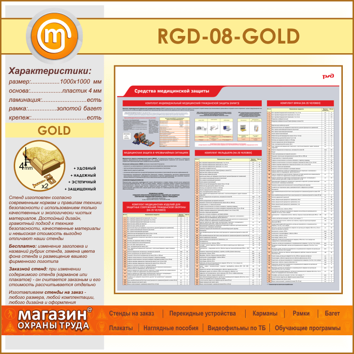 Стенд «Средства медицинской защиты» (RGD-08-GOLD) в Нижнекамске купить