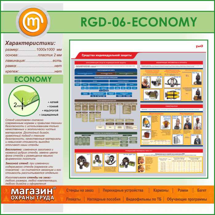 Стенд «Средства индивидуальной защиты» (RGD-06-ECONOMY) в Нижнекамске купить