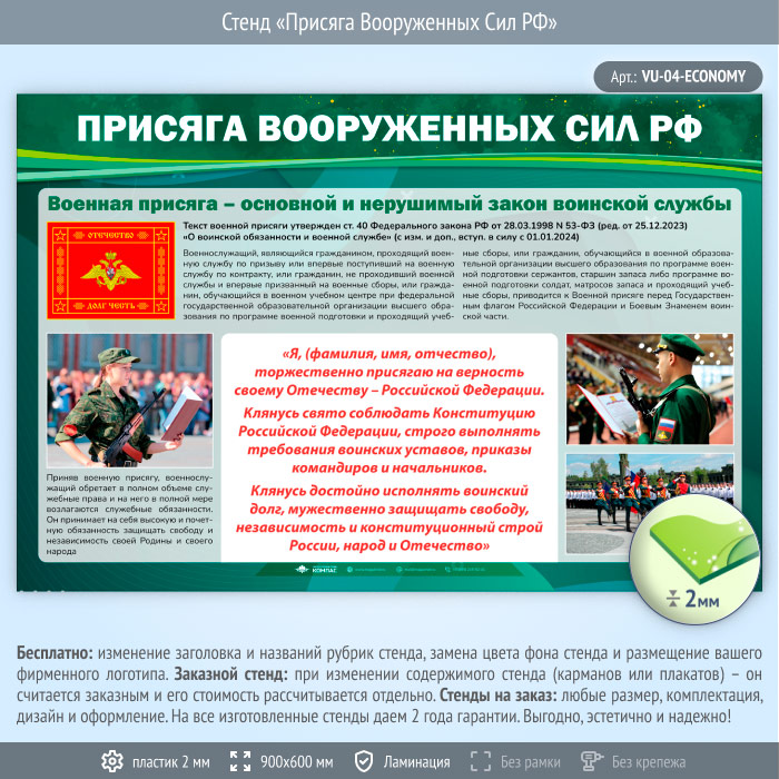 Стенд «Присяга Вооруженных Сил РФ» (VU-04-ECONOMY) в Нижнекамске купить