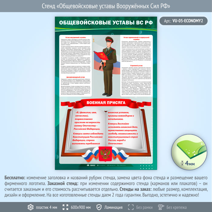 Стенд «Общевойсковые уставы Вооружённых Сил РФ» (VU-05-ECONOMY2) в Нижнекамске купить