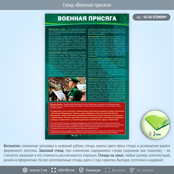 Стенд «Военная присяга» (VU-06-ECONOMY) в Нижнекамске купить