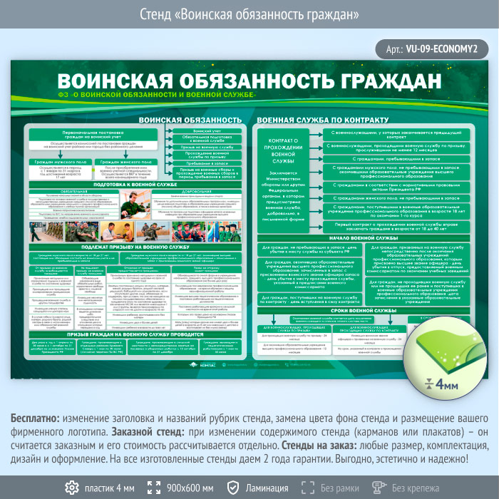 Стенд «Воинская обязанность граждан» (VU-09-ECONOMY2) в Нижнекамске купить