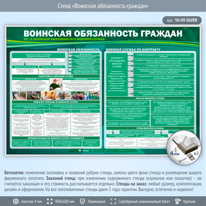 Стенд «Воинская обязанность граждан» (VU-09-SILVER) в Нижнекамске купить