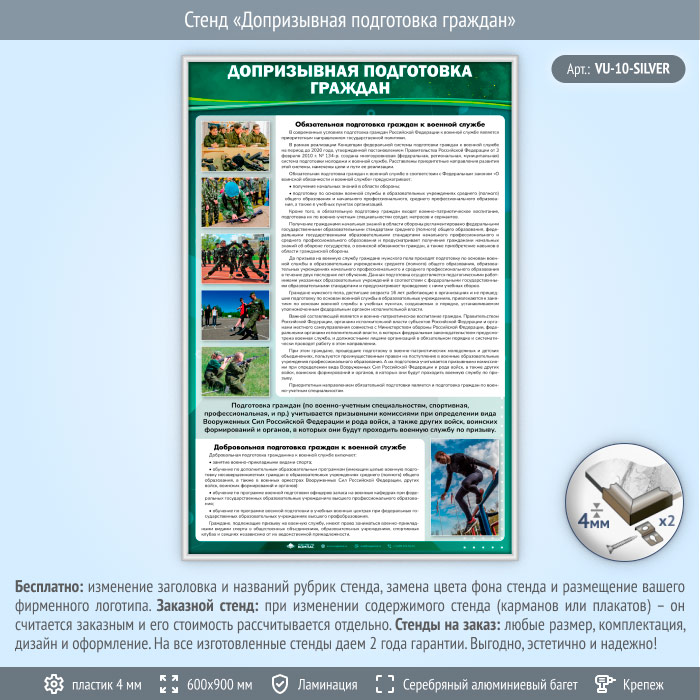 Стенд «Допризывная подготовка граждан» (VU-10-SILVER) в Нижнекамске купить