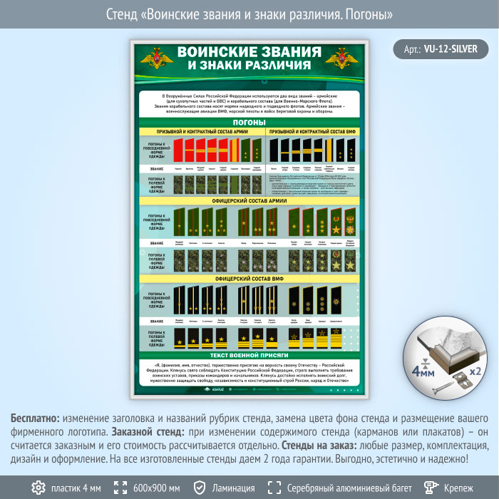 Стенд «Воинские звания и знаки различия. Погоны» (VU-12-SILVER) в Нижнекамске купить