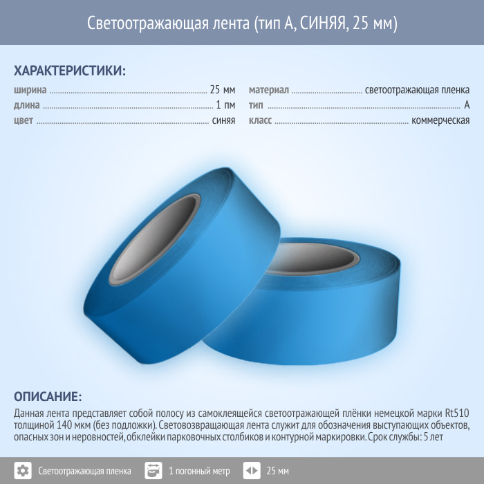 Светоотражающая однородная лента (тип А, СИНЯЯ, 25 мм х 1 п.м.) в Нижнекамске купить