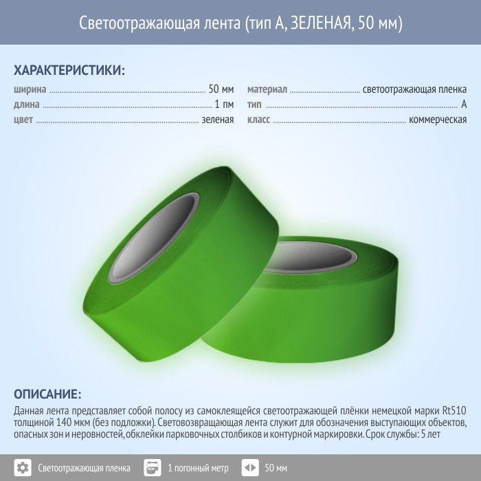 Светоотражающая однородная лента (тип А, ЗЕЛЕНАЯ, 50 мм х 1 п.м.) в Нижнекамске купить