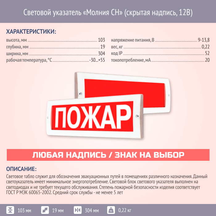 Световой указатель Молния СН (скрытая надпись, 12В) в Нижнекамске купить