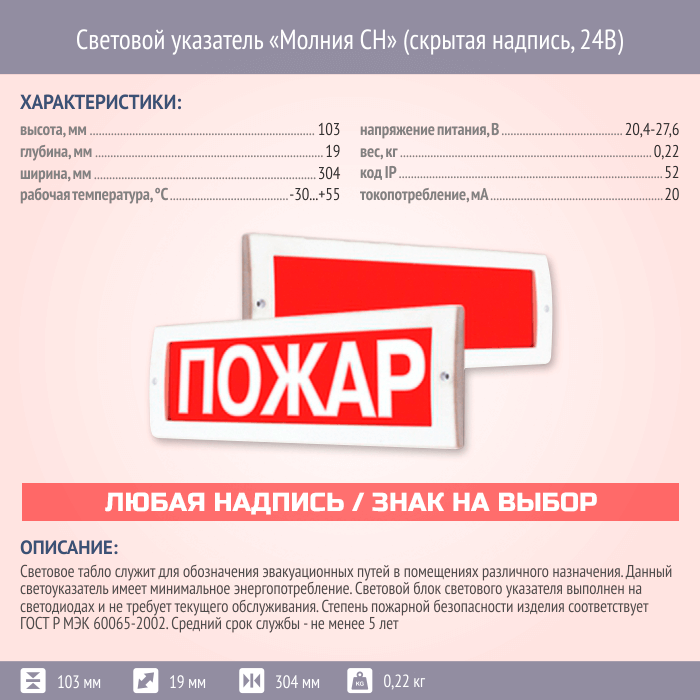 Световой указатель Молния СН (скрытая надпись, 24В) в Нижнекамске купить
