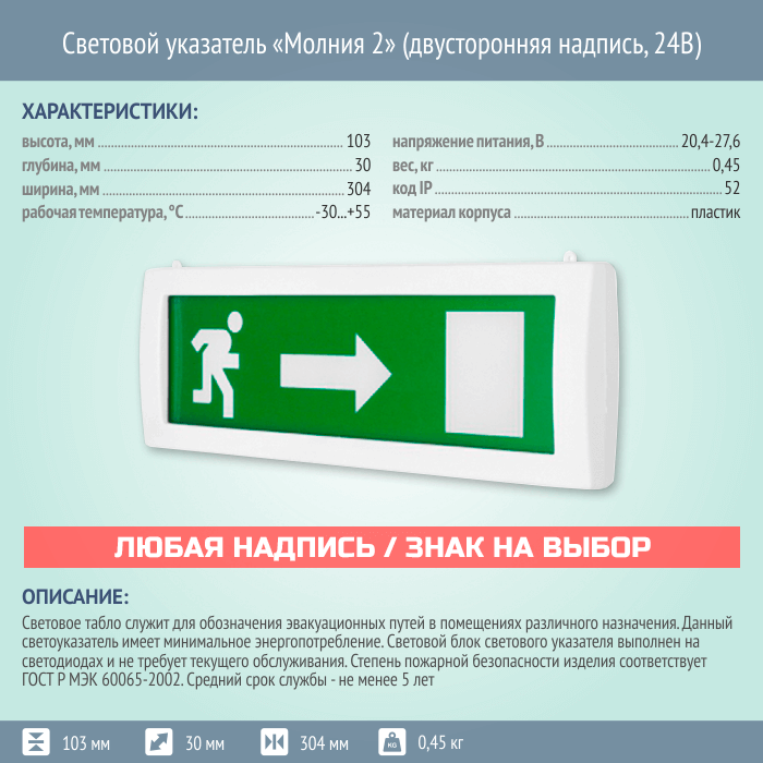 Световой указатель Молния 2 (двусторонняя надпись, 12В) в Нижнекамске купить
