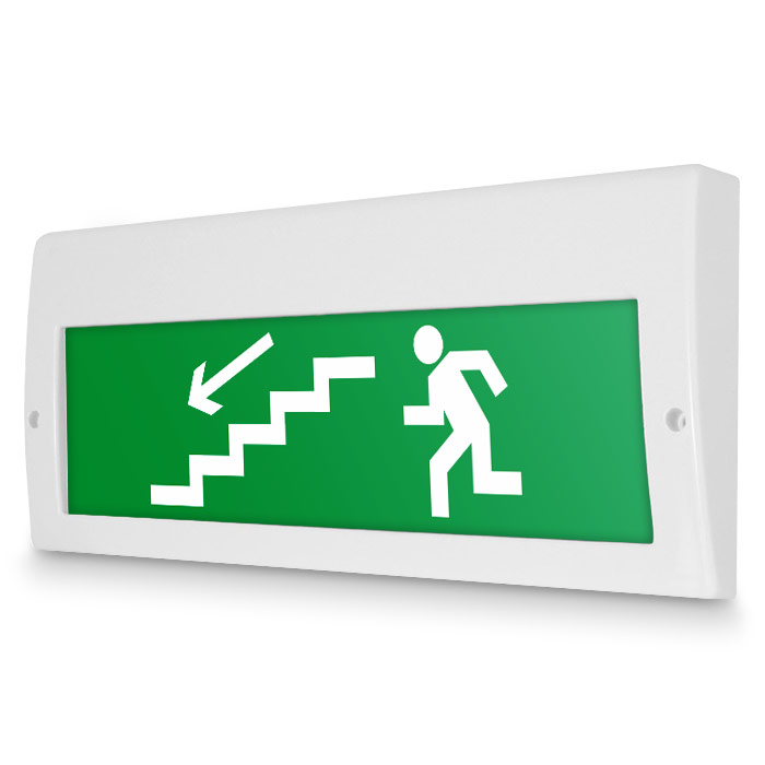 Световое табло «Направление к эвакуационному выходу по лестнице вниз (левосторонний)», Молния (220В РИП) в Нижнекамске купить