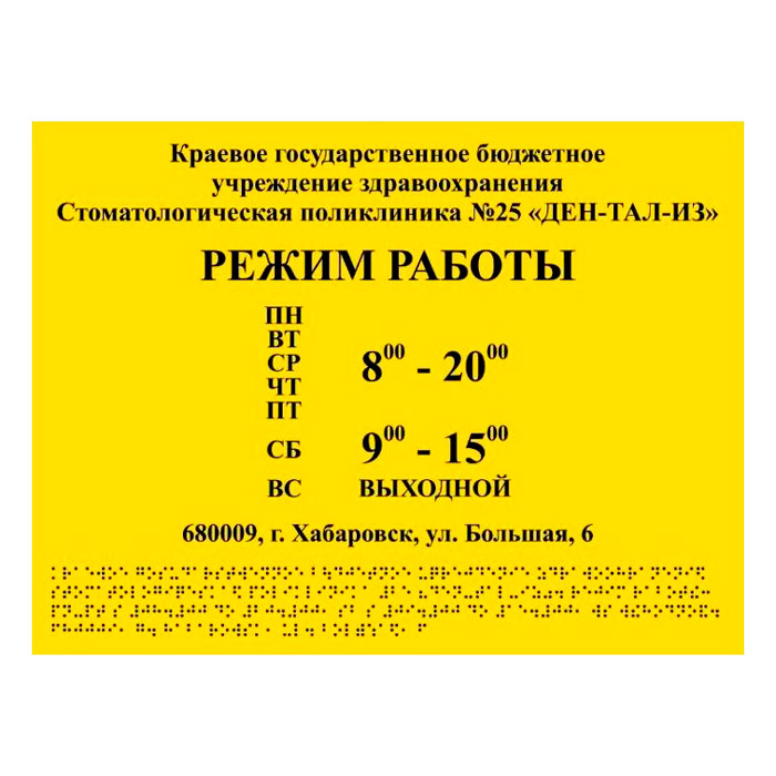 Тактильная вывеска с дублированием азбукой Брайля, ДС12 (полистирол 3 мм, 400х300 мм) в Нижнекамске купить