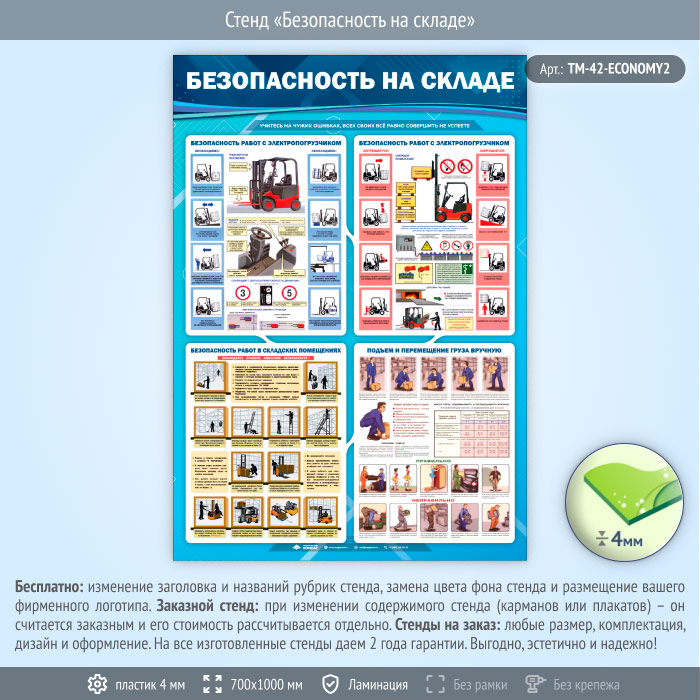Стенд «Безопасность на складе» (TM-42-ECONOMY2) в Нижнекамске купить