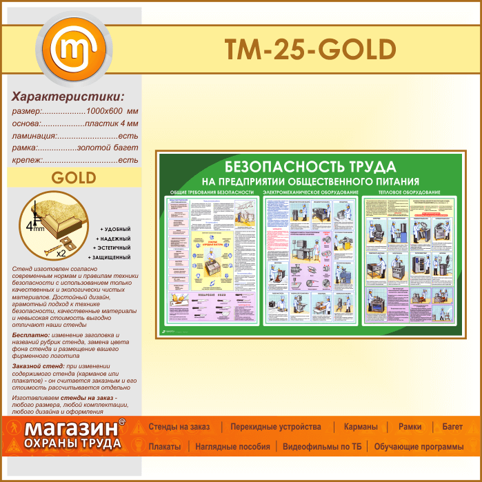 Стенд «Безопасность труда на предприятиях общественного питания» (TM-25-GOLD) в Нижнекамске купить