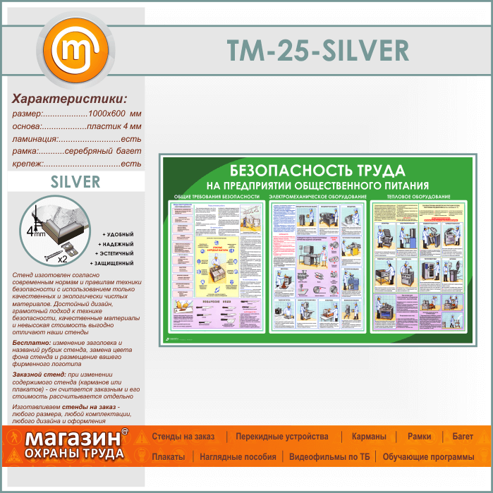 Стенд «Безопасность труда на предприятиях общественного питания» (TM-25-SILVER) в Нижнекамске купить