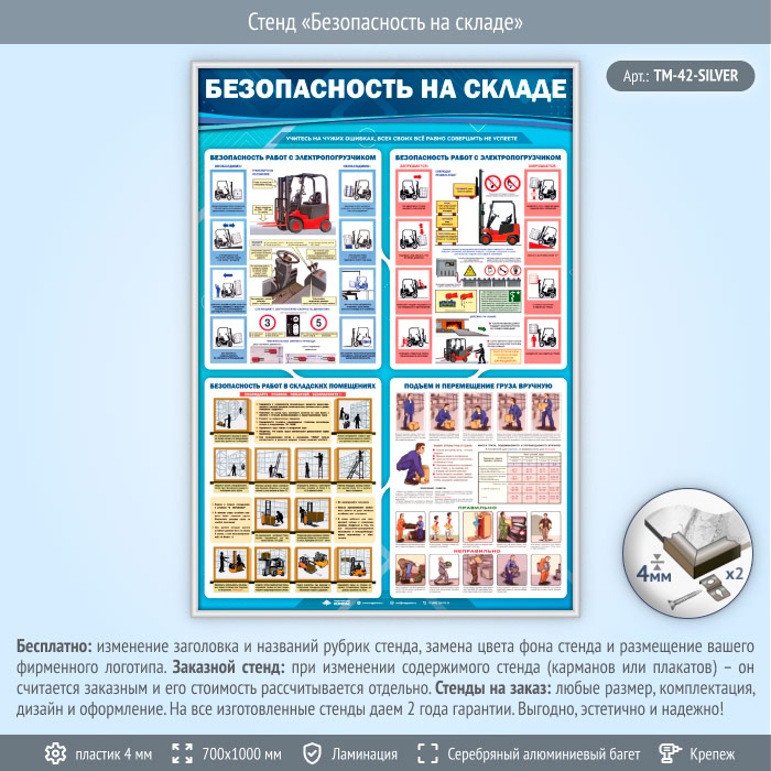 Стенд «Безопасность на складе» (TM-42-SILVER) в Нижнекамске купить
